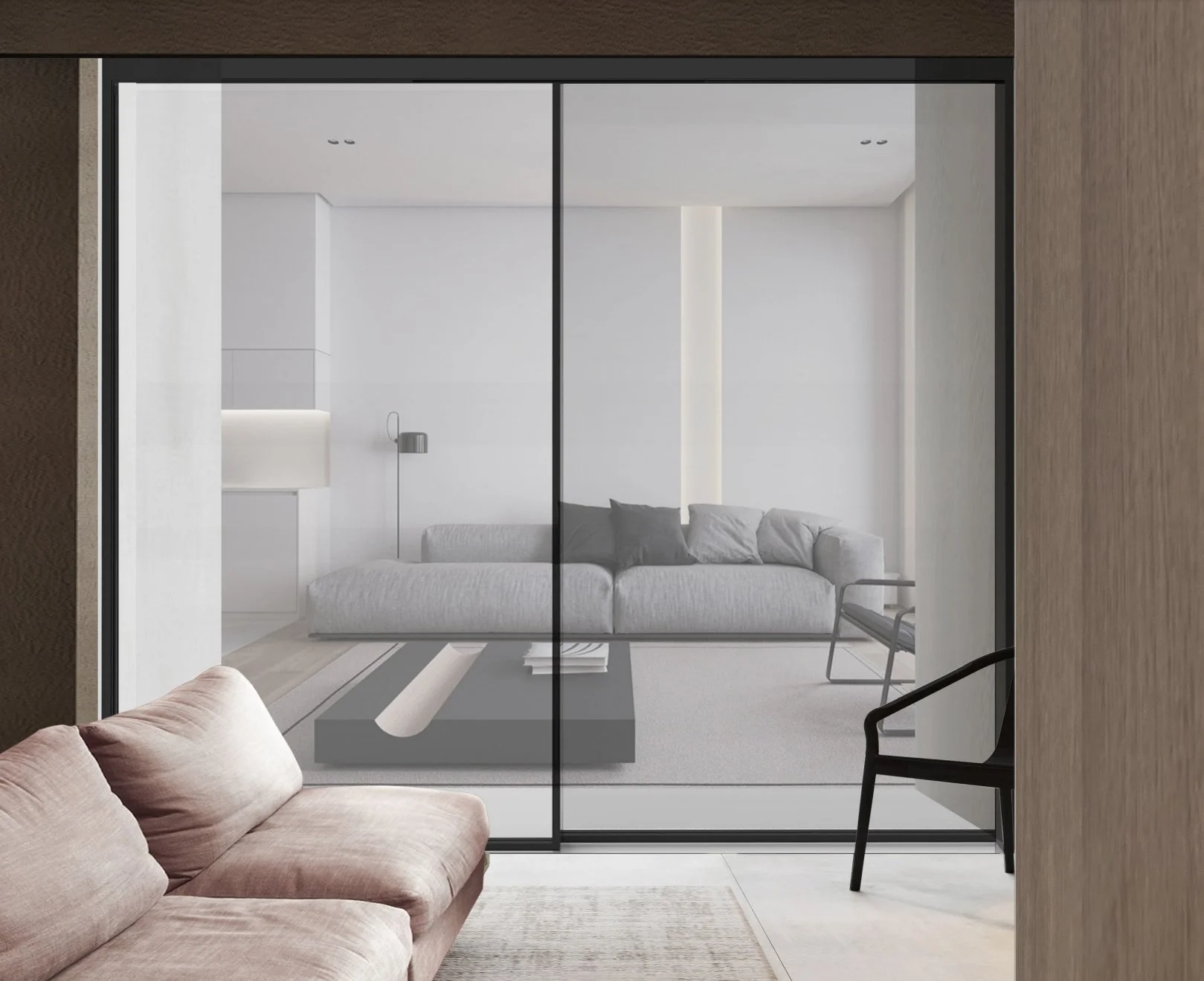 Extremely Narrow Hanging Sliding Door - Aluminum & Glass (Glass Style: Variable Choice)